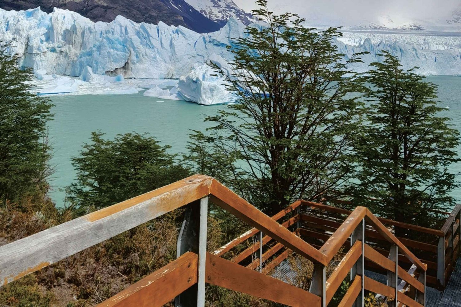 Vi ankommer til Perito Moreno-gletsjeren og begiver os ud på en uforglemmelig gåtur langs pasarelas (gangbroer). Din guide ledsager gruppen til gletsjerens hovedbalkon. Fra hovedbalkonen, kun 146 meter fra indgangen til gangbroerne, vil du blive overvældet af panoramaudsigten over gletsjerens nord- og sydside samt isakkumuleringszonen.