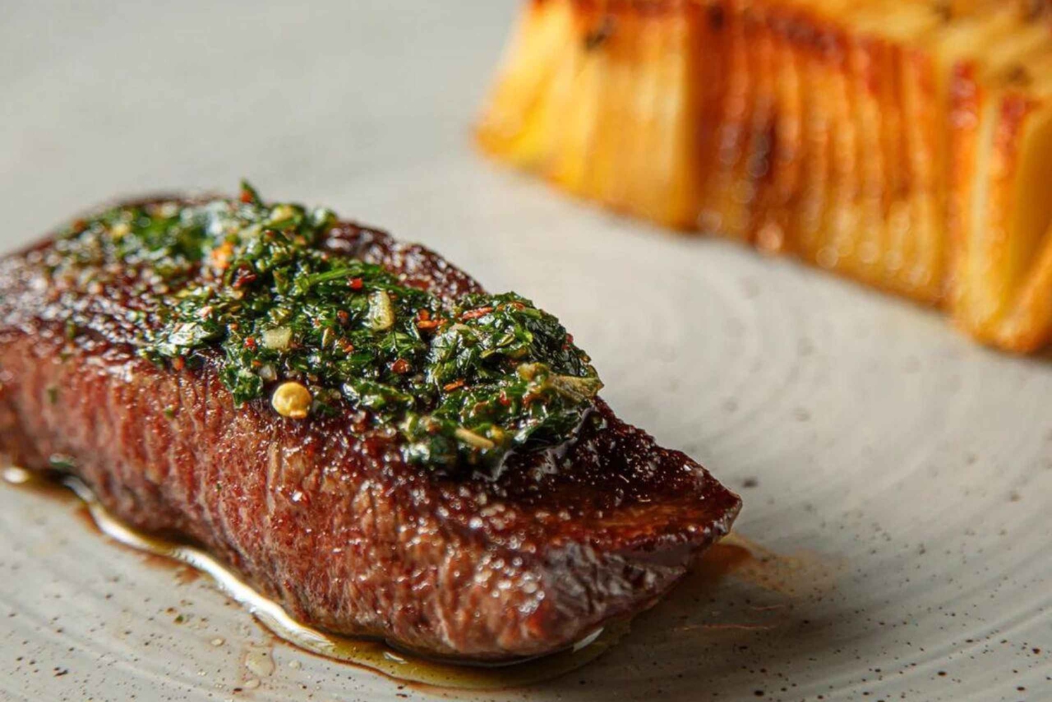 - Solomillo de ternera con patatas dominó y salsa chimichurri