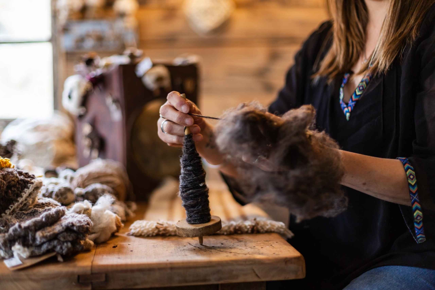 Nous visitons la matera où nous rencontrons les fileuses qui nous montrent les vêtements fabriqués avec la laine et nous racontent le processus.
