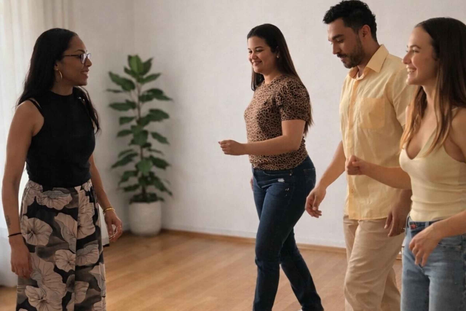 Vais aprender estruturas de dança que nunca vais esquecer de uma forma simples e divertida. Os teus ritmos principais serão: salsa, bachata, merengue e cumbia colombiana