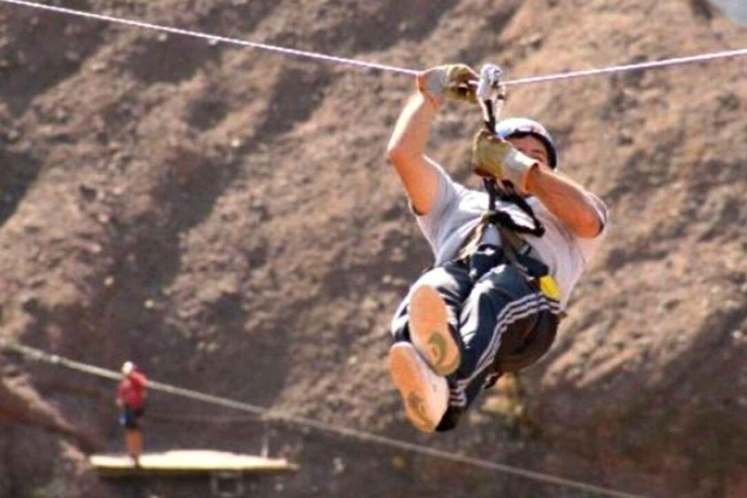 Pega um elevador até o ponto de partida no Cerro López e começa a tua aventura aérea colocando um arnês e um capacete, e ouvindo as instruções de segurança dos teus guias treinados. Quando estiveres pronto para começar, sobe até à tua primeira plataforma, chega à borda e respira fundo antes de saltares para o ar livre. Sente a tirolesa a prender e a puxar enquanto começas a deslizar por entre ramos cheios de folhas. Observa a paisagem verde a passar e depois pára graciosamente na plataforma seguinte.