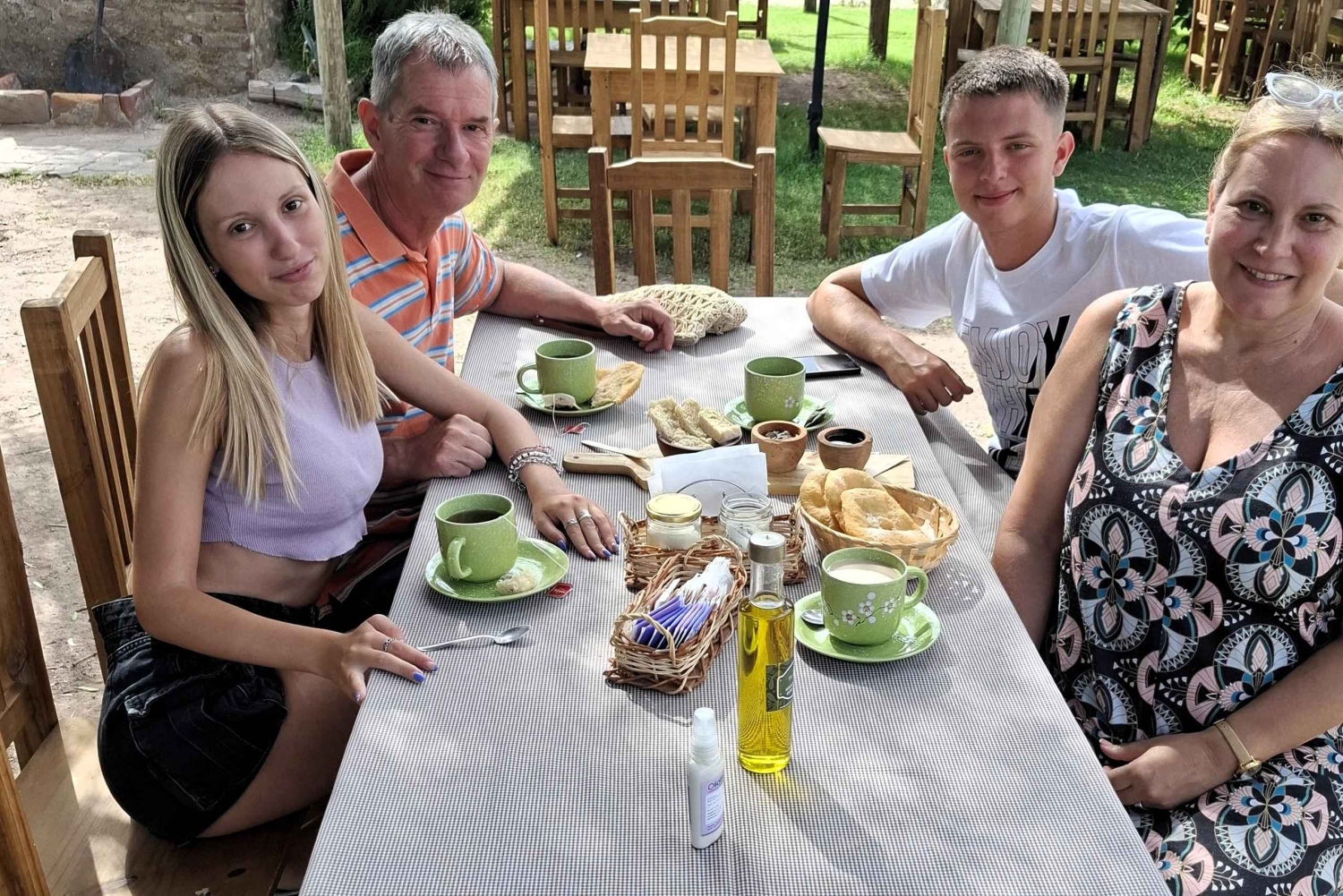 После посещения вы можете насладиться деревенским завтраком, состоящим из таких напитков, как чай, кофе или классический мате, в сопровождении тортитас мендос, круассанов и/или мендосских супчиков (жареный торт), домашних джемов и тостов.