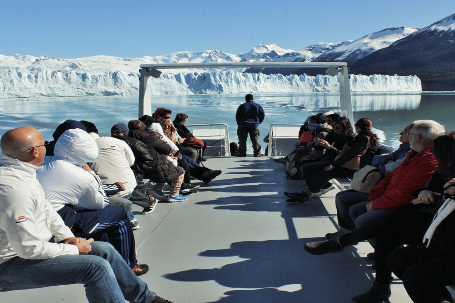 Ваш гид организует 1-часовую прогулку на лодке, которая доставит вас к высокой северной стене ледника — это незабываемый момент, когда вы сможете увидеть масштабы и цвета льда с уровня воды.